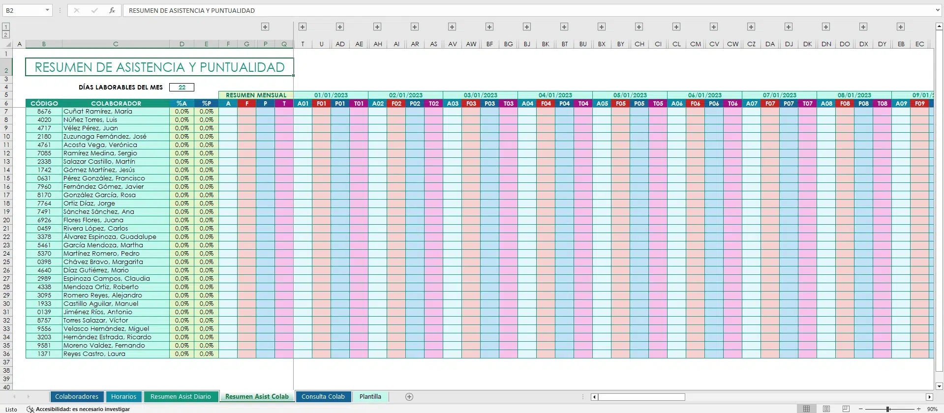 Desarrollado a medida para SIMBOL, el Excel refleja una solución propia, diferenciada y optimizada. Automatiza procesos como la carga de asistencia, el control de llegadas tarde, ausencias y generación de reportes mensuales, alineándose con la cultura organizacional y las dinámicas reales de trabajo.